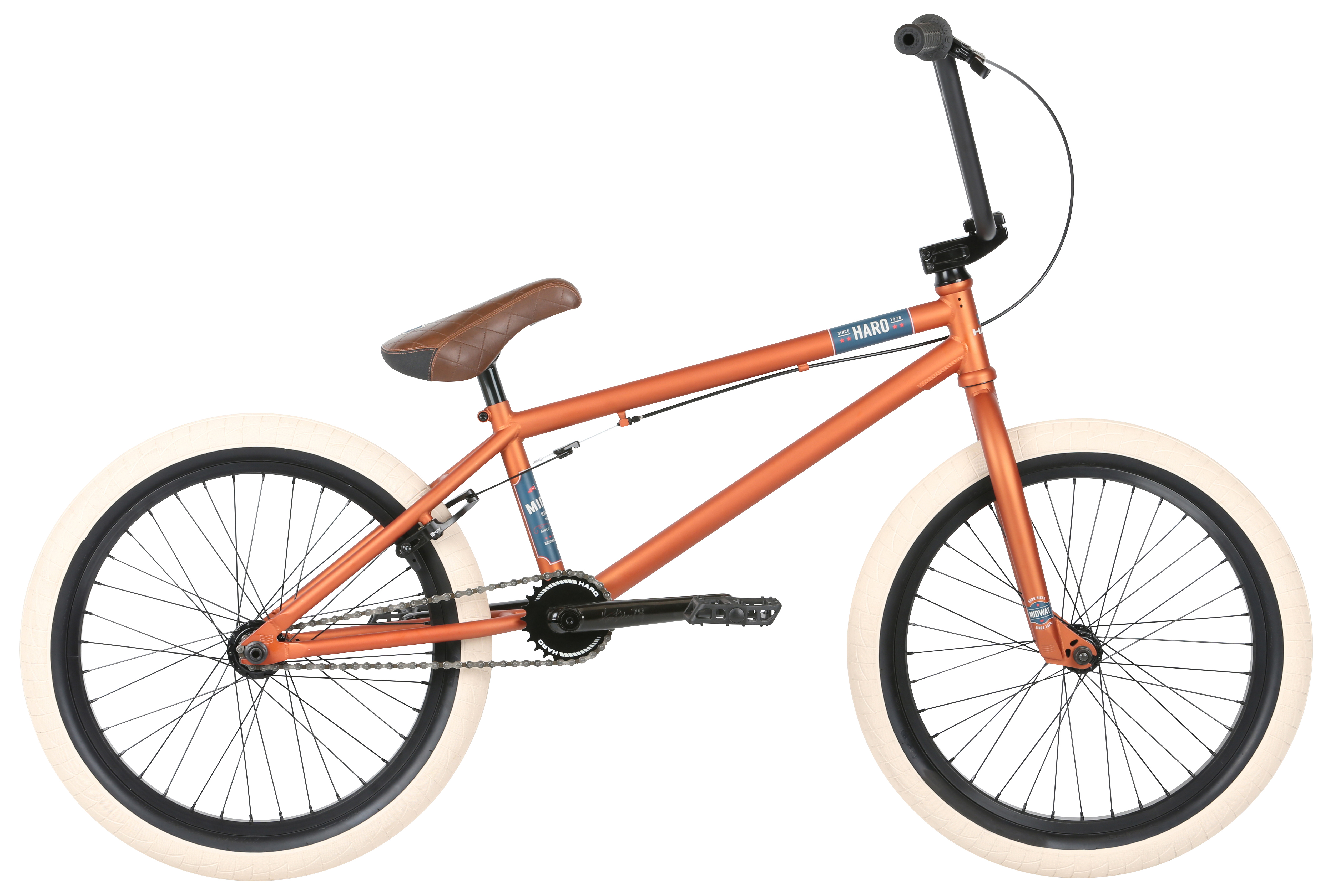Бренд HARO Модель Midway Год 2019 Рама/описание 3 tubes Crmo, Internal HT mid BB - 20.5 21 TT Тип вилки Жесткая (композит) Ход вилки, мм нет Вилка/регулировки Internal threaded Crmo steer tube, Hi-ten taper legs Диаметр колес 20" Обода 36H Alloy single wall Покрышки Haro La Mesa 20x2.40 / Haro La Mesa 20x2.40 Тормоза Ободные (V-brake) Грипсы Haro Team flangeless grip Тормоз / Haro 1978 Alloy 990 U-brake Тормозные ручки Haro 1978 Alloy hinged lever Уровень оборудования Любительский Кассета 9T driver with sealed bearing Каретка Mid sealed bearing BB Шатуны 3 pc Crmo 8 spline 175mm Количество скоростей 1 Руль Hi-ten 8.75 or 9 rise Вынос Haro alloy top load stem Седло Padded Pivotal Подседельный штырь Alloy Pivotal post Педали Haro 1978 plastic Втулка передняя 36H Alloy Shell loose ball w 38 axle Пол/возраст Мужской Втулка задняя 36H Alloy Shell free-coaster w male axle 9T driver -